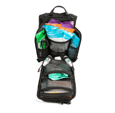 For preppers wanting pro-level upgrades, the MyMedic MyFAK PRO delivers 140+ items in a waterproof bag that aced our humidity tests. It includes CAT tourniquet, HyFin seals, shears, gauze, burn gel, and meds (ibuprofen, Benadryl), with labeled compartments for fast access during emergencies. At 2.5 lbs, it's ideal for family bug-out bags or home stockpiles, handling cuts, burns, and sprains effectively.